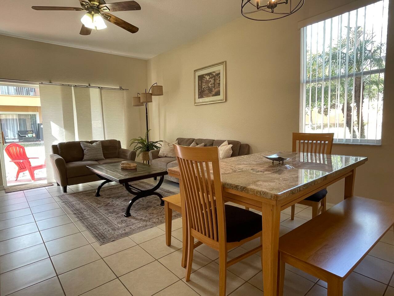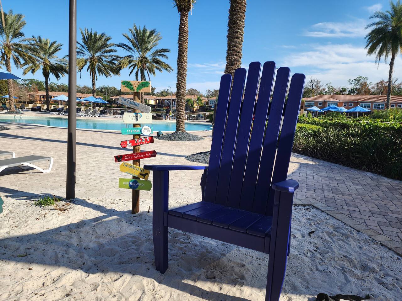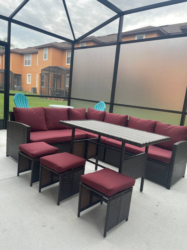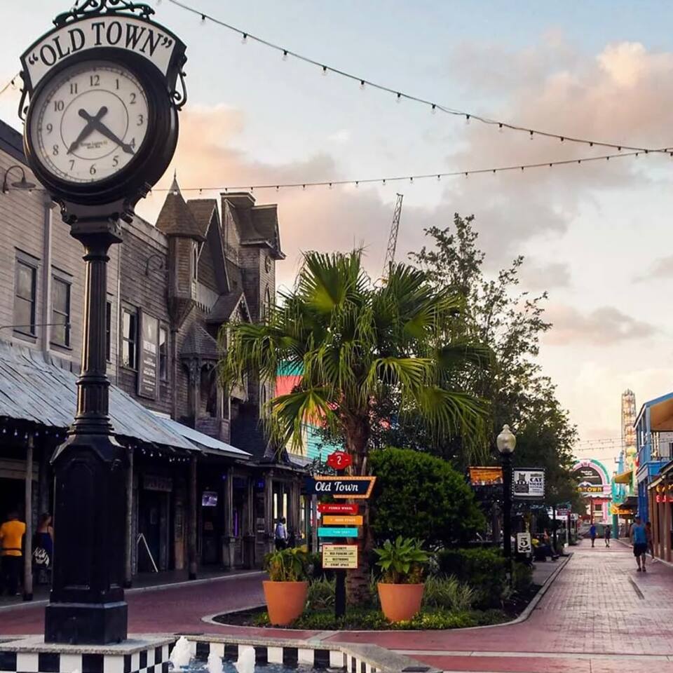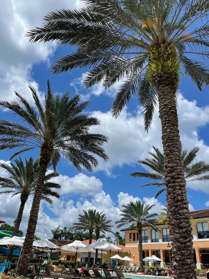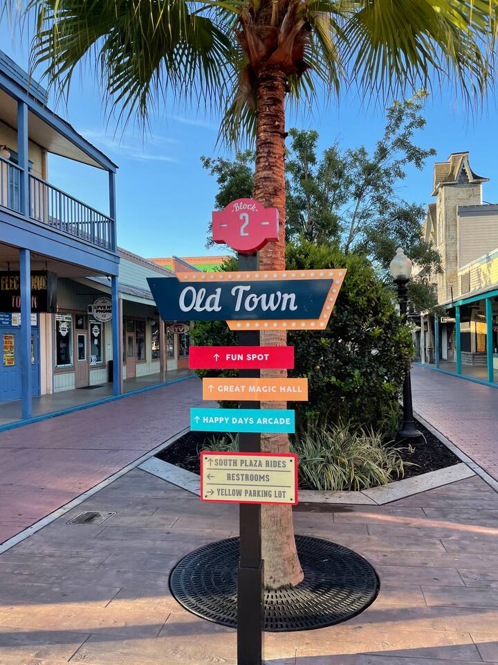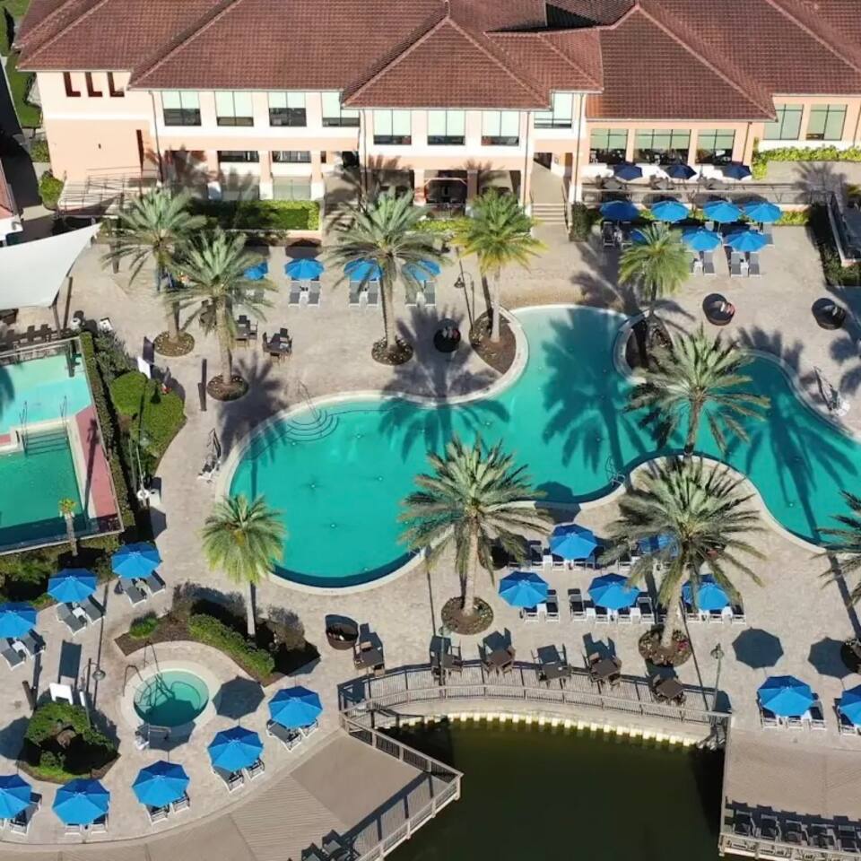 4 miles from Disney Parks Swimming pool with dueling water slides Fully equipped kitchen Baby-friendly amenities Whether you’re enjoying the magic of the theme parks or relaxing poolside, this property offers a resort-like atmosphere with all the comforts of home. ABOUT THE RESORT This charming townhouse is located at Regal Oaks Resort at Old Town, Kissimmee, just a short walk from Old Town's many attractions, including bars, restaurants, shops, and a carnival-style amusement park! Swimming Pools Relax under Florida’s sun on one of the many poolside loungers surrounded by palm trees, and cool off in the inviting pool. The pools are open daily from dawn until dusk and are heated year-round. Water Slides The highlight of Regal Oaks' outdoor oasis is the dueling water slides. Perfect for all ages, these slides offer endless fun for the whole family! Race your friends down the slides or enjoy the view from the top of the landing deck. This mini water park is sure to be a favorite part of your Florida vacation. The slides are open year-round, and riders must be at least 48 inches tall. The resort features 24-hour manned gated security for your peace of mind. ACCOMMODATION DETAILS Our vacation home is self-catered for your convenience. Upon arrival, you'll find everything ready for your stay: fresh linens and towels for up to 8 guests, as well as shampoo, body wash, and toilet paper in each bathroom. You’ll also have enough cleaning supplies for the first few days. If you run out of toilet paper or garbage bags, they are available at the clubhouse convenience store or at nearby supermarkets. Should you need additional clean towels or linens, you can use the washer and dryer in the unit, or request a mid-stay cleaning service (including replenishment of toiletries and cleaning supplies). For your security and peace of mind, this home is equipped with a Ring doorbell at the front entrance and a Ring camera facing the back porch. These devices are used to monitor package deliveries and garbage pickup. There are no cameras or recording devices inside the home.