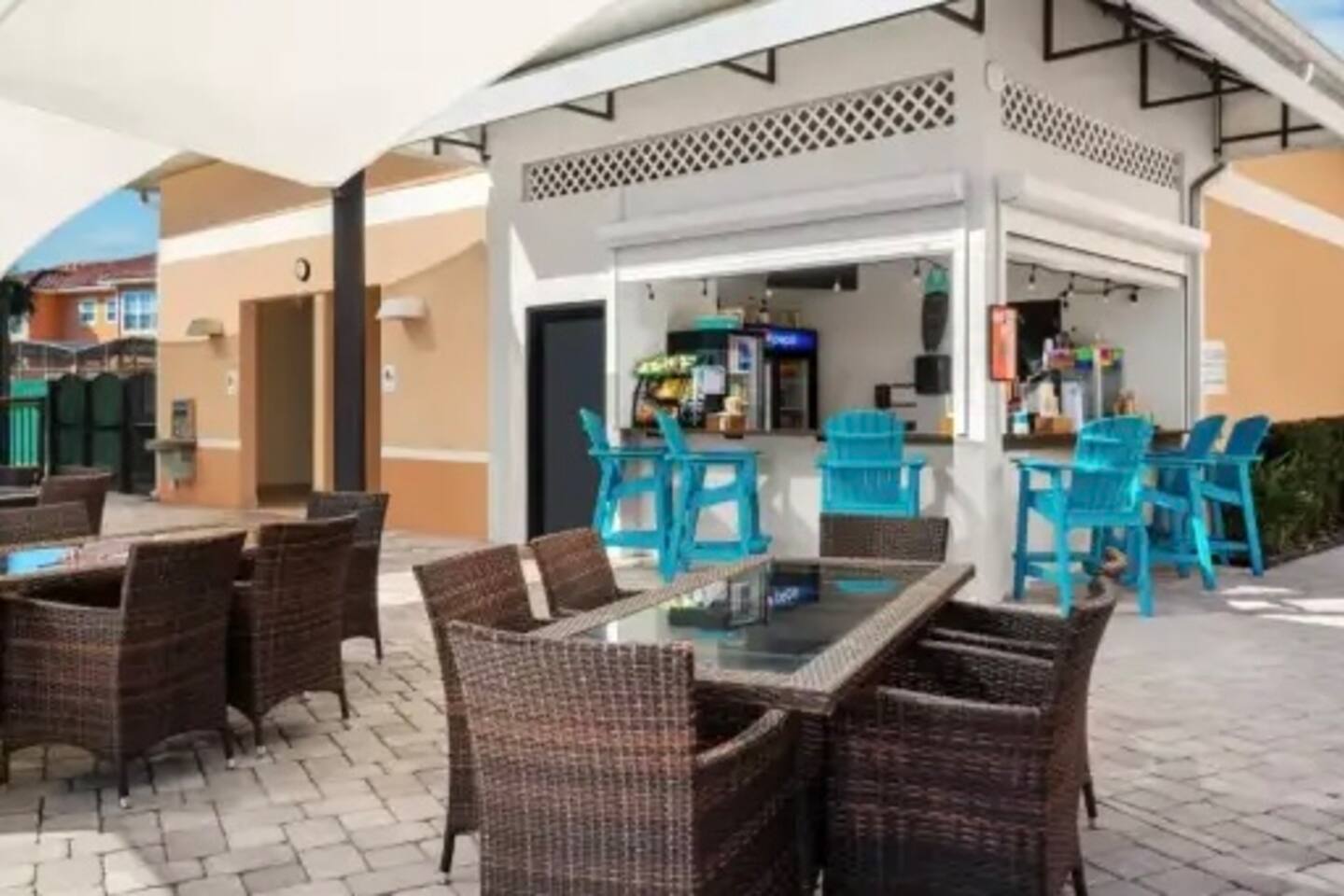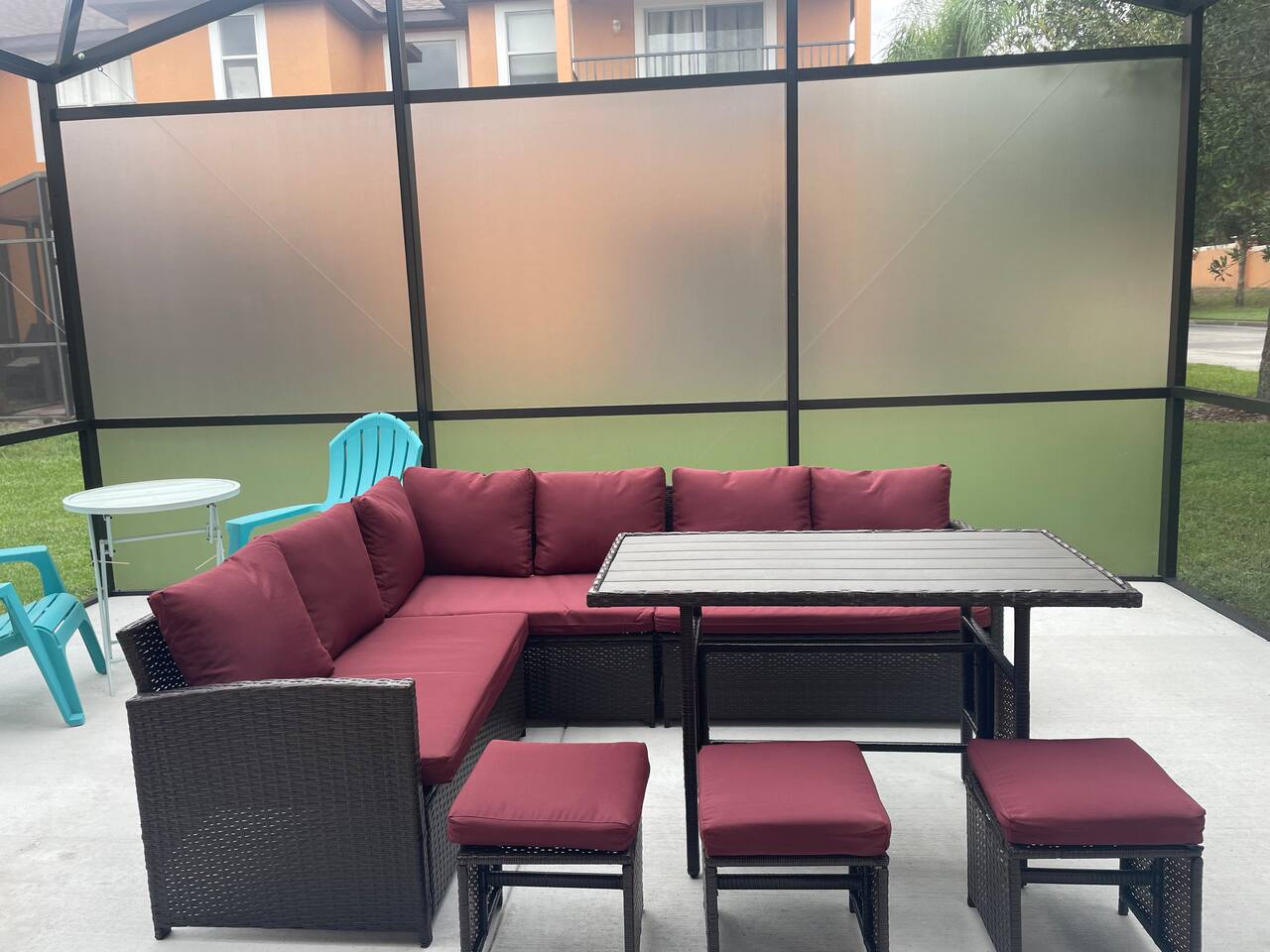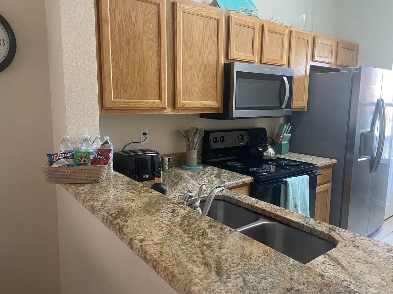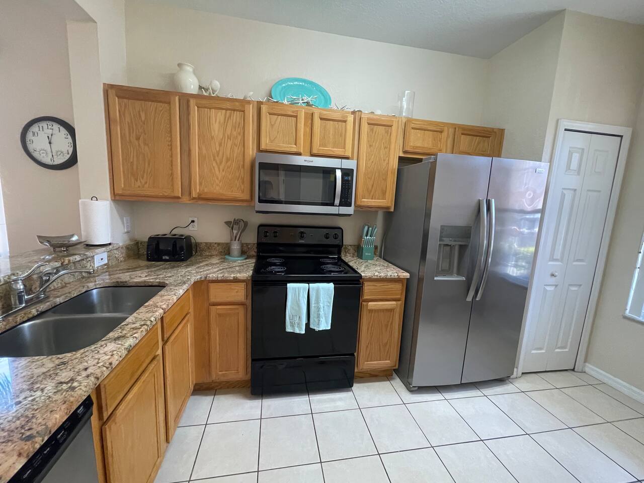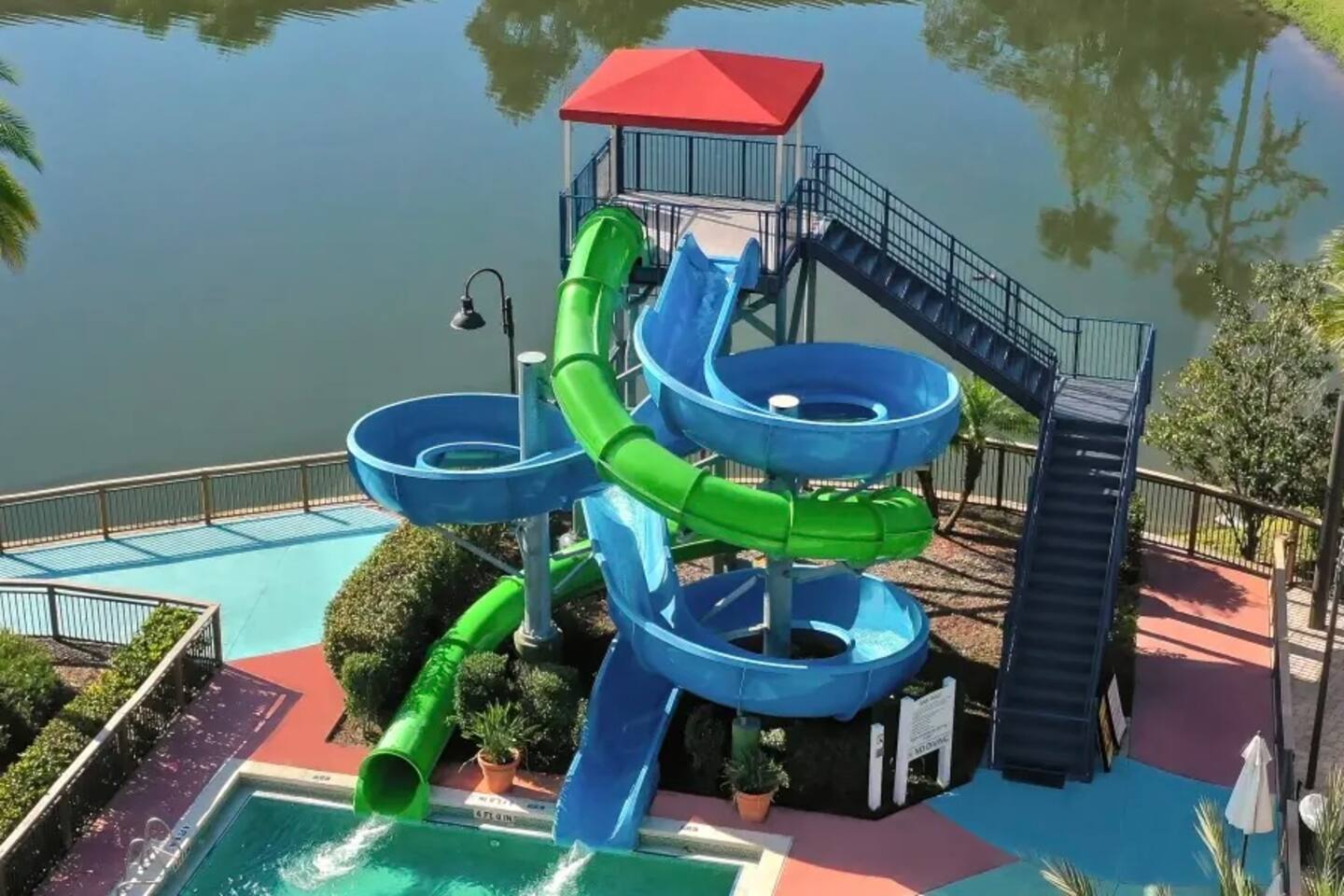 4 miles from Disney Parks Swimming pool with dueling water slides Fully equipped kitchen Baby-friendly amenities Whether you’re enjoying the magic of the theme parks or relaxing poolside, this property offers a resort-like atmosphere with all the comforts of home. ABOUT THE RESORT This charming townhouse is located at Regal Oaks Resort at Old Town, Kissimmee, just a short walk from Old Town's many attractions, including bars, restaurants, shops, and a carnival-style amusement park! Swimming Pools Relax under Florida’s sun on one of the many poolside loungers surrounded by palm trees, and cool off in the inviting pool. The pools are open daily from dawn until dusk and are heated year-round. Water Slides The highlight of Regal Oaks' outdoor oasis is the dueling water slides. Perfect for all ages, these slides offer endless fun for the whole family! Race your friends down the slides or enjoy the view from the top of the landing deck. This mini water park is sure to be a favorite part of your Florida vacation. The slides are open year-round, and riders must be at least 48 inches tall. The resort features 24-hour manned gated security for your peace of mind. ACCOMMODATION DETAILS Our vacation home is self-catered for your convenience. Upon arrival, you'll find everything ready for your stay: fresh linens and towels for up to 8 guests, as well as shampoo, body wash, and toilet paper in each bathroom. You’ll also have enough cleaning supplies for the first few days. If you run out of toilet paper or garbage bags, they are available at the clubhouse convenience store or at nearby supermarkets. Should you need additional clean towels or linens, you can use the washer and dryer in the unit, or request a mid-stay cleaning service (including replenishment of toiletries and cleaning supplies). For your security and peace of mind, this home is equipped with a Ring doorbell at the front entrance and a Ring camera facing the back porch. These devices are used to monitor package deliveries and garbage pickup. There are no cameras or recording devices inside the home.