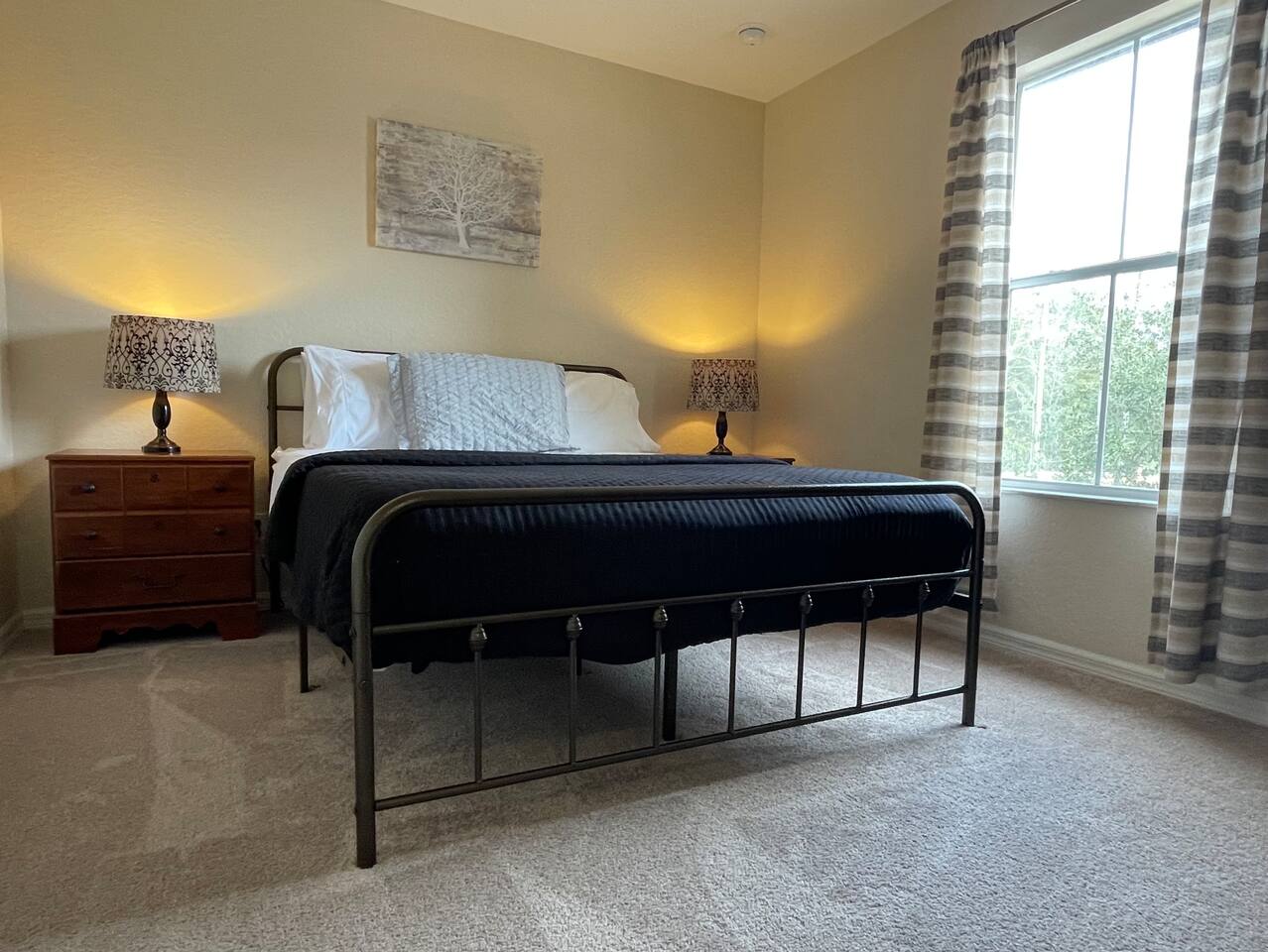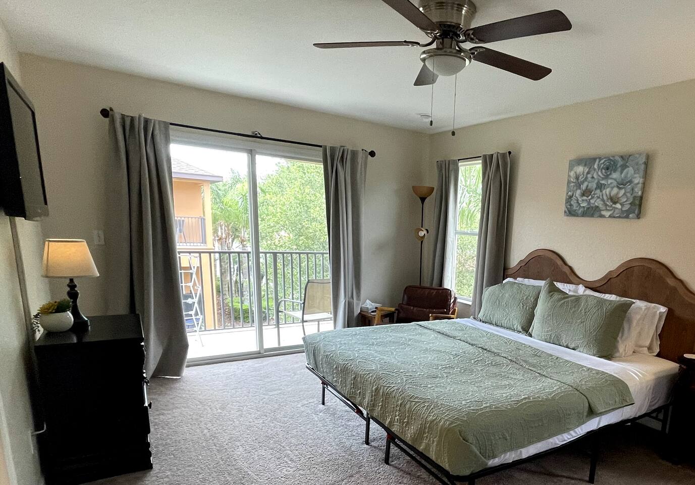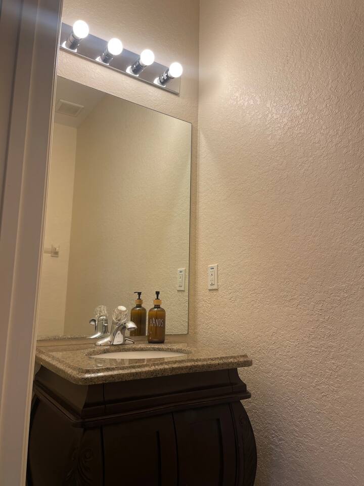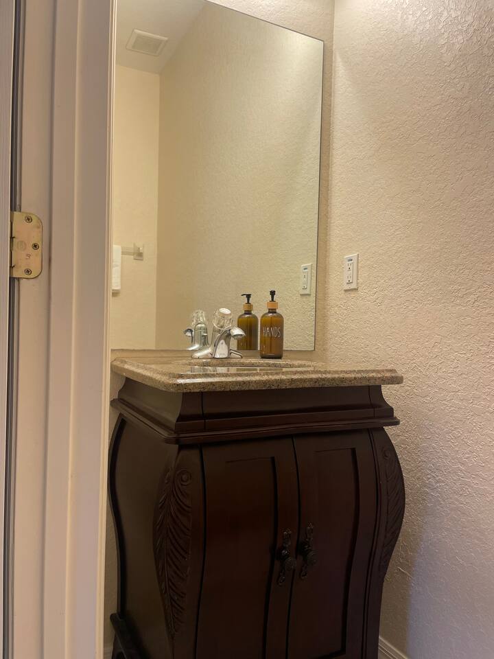 Modern 4BR Home with Balcony | Near Disney & ESPN | Family & Team Friendly Welcome to your stylish Kissimmee retreat! This spacious 4-bedroom, 3.5-bath home comfortably sleeps 8 and offers modern amenities and plenty of space for families, sports teams, or groups visiting the Orlando area. 🛏️ Sleeping Arrangements Master suite upstairs with king bed and private balcony Queen bedroom on the first floor Full bedroom and bunk bedroom (full over twin) upstairs Fresh linens, comfortable beds, and ample closet space for all guests 🍳 Fully Equipped Kitchen & Living Areas Prepare meals in the modern kitchen with stainless steel appliances, cookware, and an open dining area. Relax in the spacious living room with a Smart TV and high-speed Wi-Fi throughout the home. 🛋️ Additional Comforts 3.5 bathrooms including a half bath on the first floor In-unit washer and dryer Central air conditioning 🏡 Safe & Secure For your safety, the home is equipped with a Ring doorbell at the front entrance and a Ring camera facing the back porch. These outdoor cameras help monitor the property and provide peace of mind. There are no cameras inside the home. 📍 Prime Location Near Major Attractions 8 minutes to Disney World 5 minutes to ESPN Wide World of Sports 15 minutes to Universal Studios 20 minutes to Orlando Convention Center 45 minutes to Legoland Florida 1 hour to Kennedy Space Center Close to grocery stores, restaurants, and entertainment options 🏊 Community Amenities Enjoy access to a resort-style pool, clubhouse, and walking trails in this gated community—perfect for relaxing after a day at the parks or tournaments. Whether you're here for a family vacation, sports event, or group getaway, this comfortable, secure home provides everything you need for an unforgettable stay in Central Florida. Book now and start making memories!